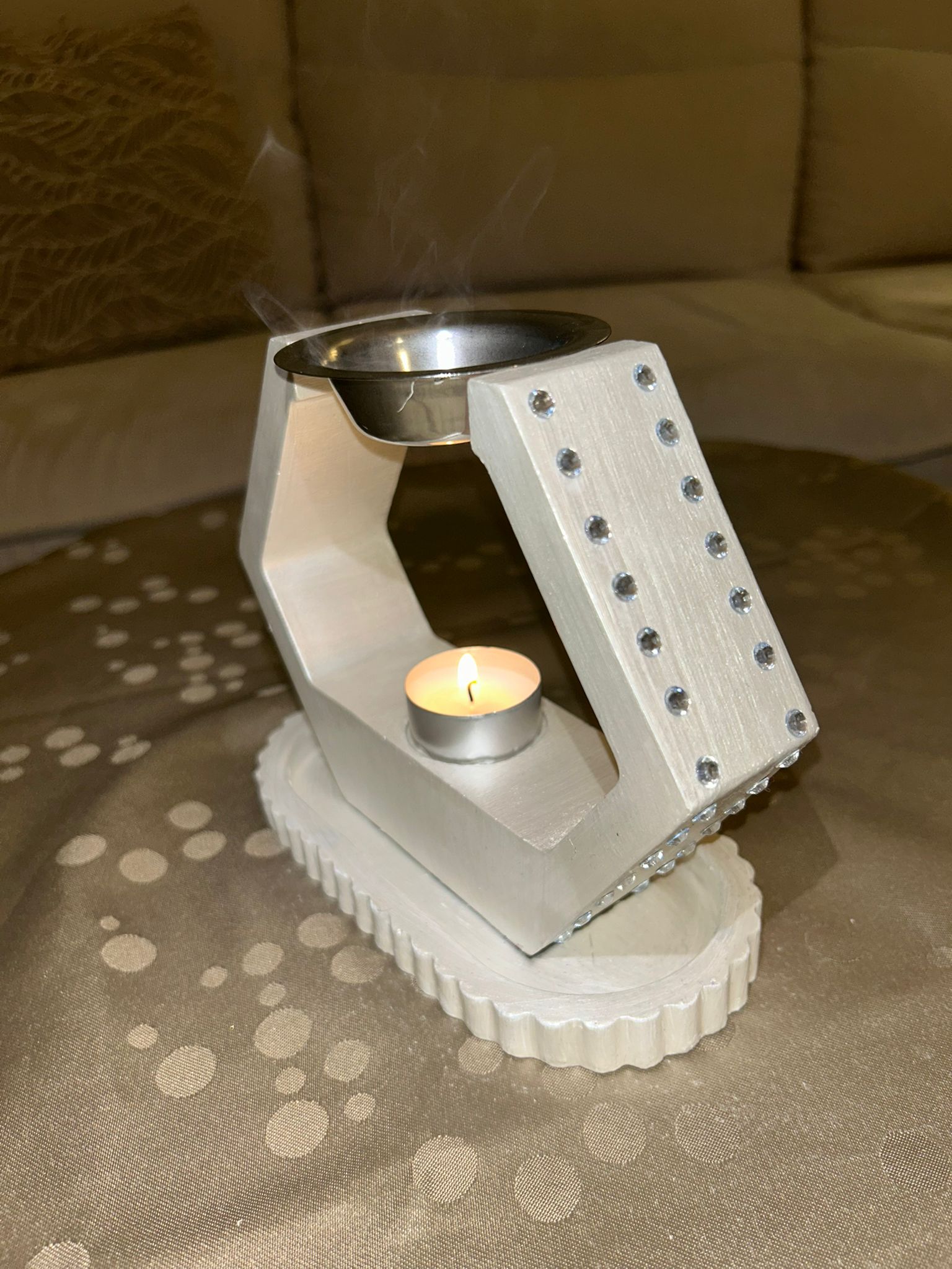 À la fois décoratif et fonctionnel, ce brûleur à fondants devient un véritable bijou d’intérieur, une pièce d’exception qui sublime l’espace et transforme chaque diffusion de parfum en un rituel chic et sophistiqué.