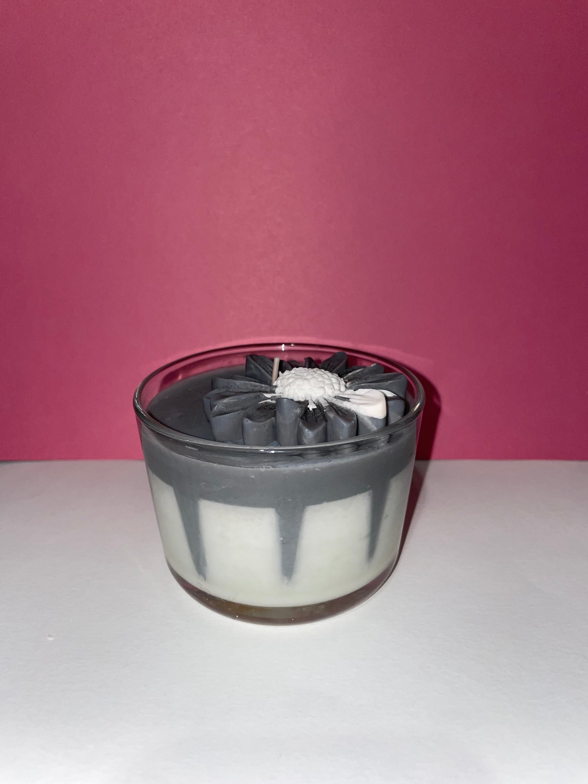 Laissez-vous envoûter par notre bougie unique pour une véritable évasion sensorielle aux notes délicates de rose, de mauve et d’argent. Cette bougie est sublimée par une délicate fleur, ornée de nuances grises et blanches, qui ajoute une touche d’élégance à votre espace.