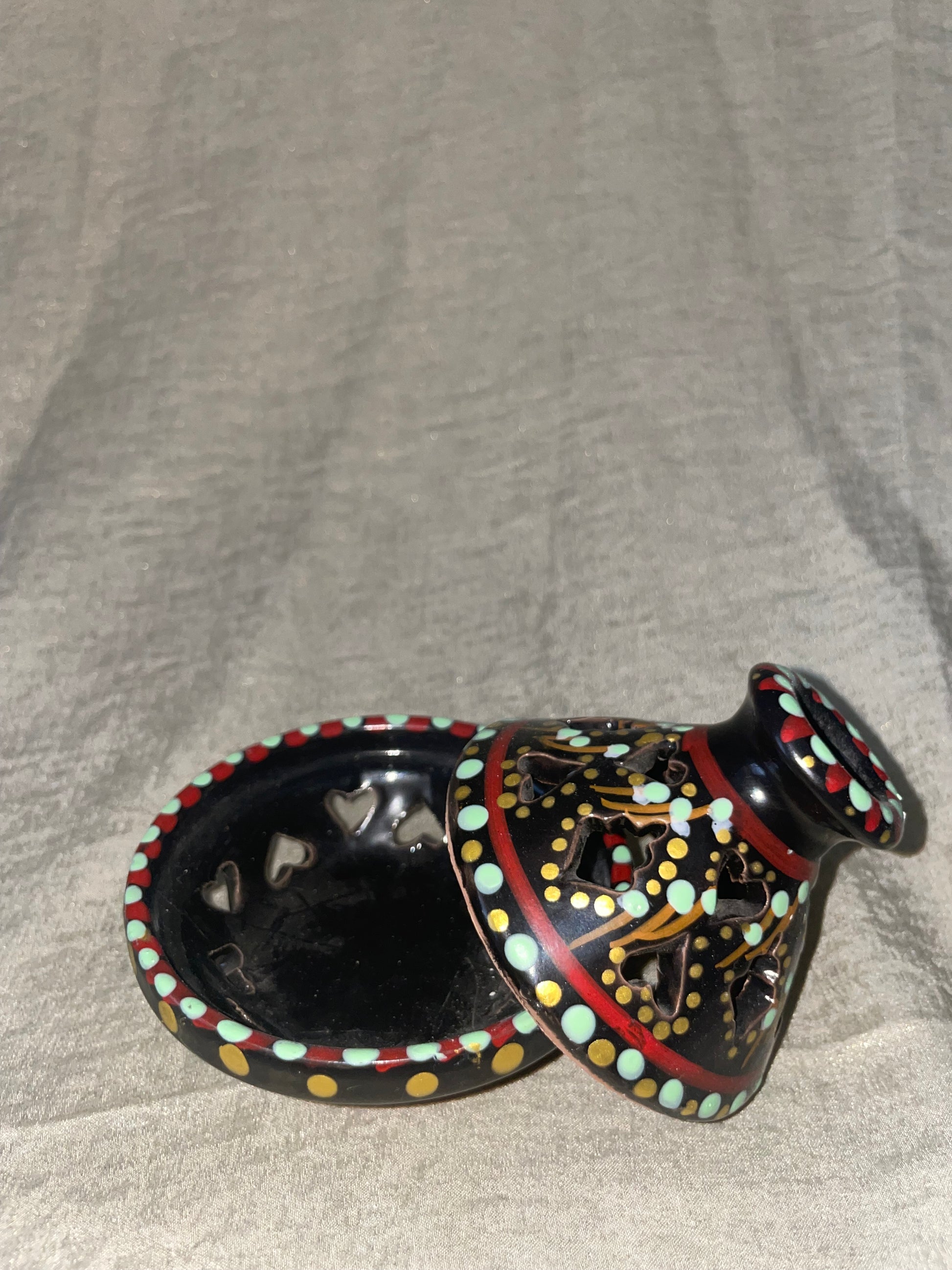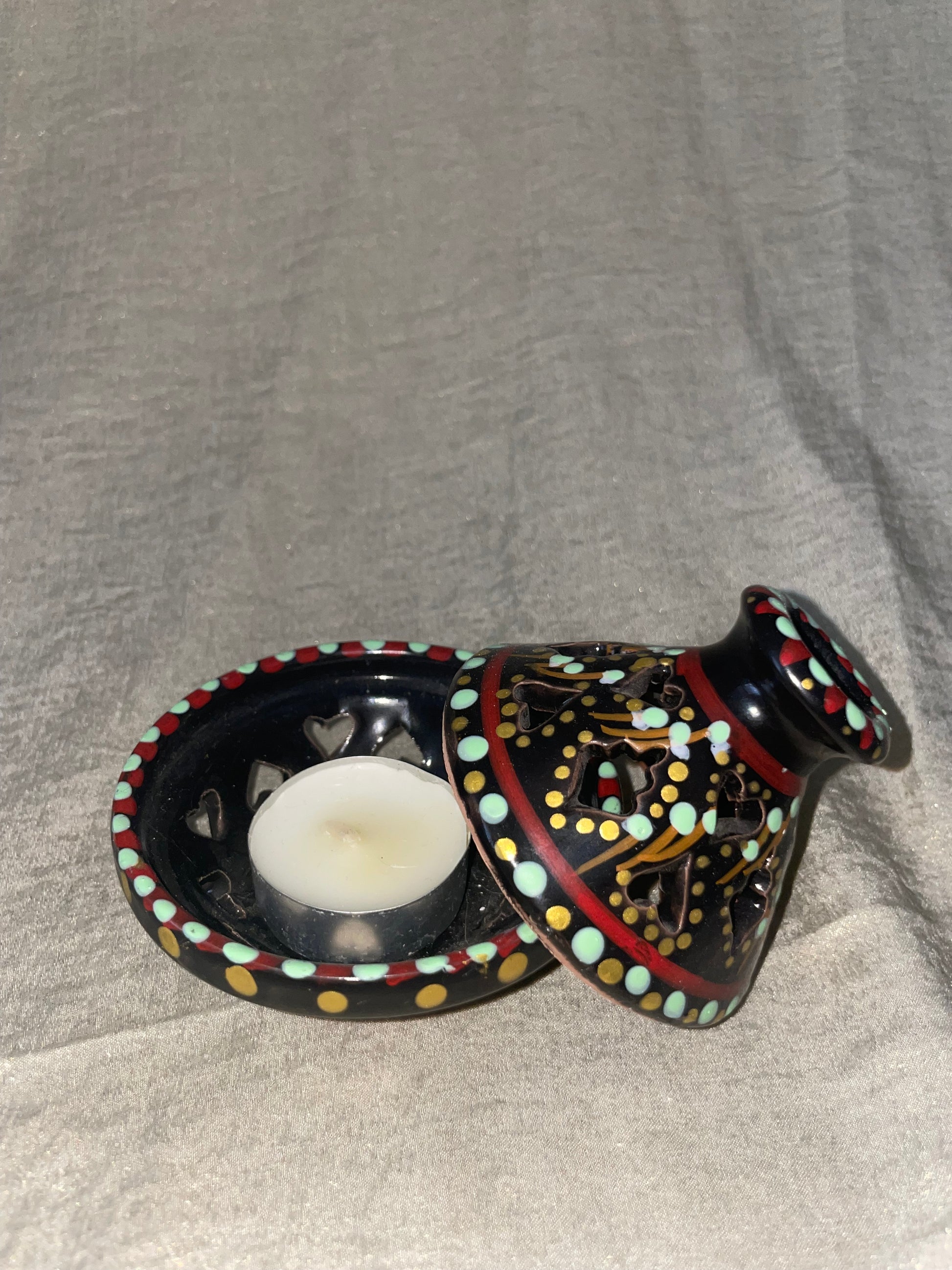 Apportez une touche d'élégance et de chaleur à votre intérieur avec ce magnifique photophore en céramique. Inspiré du style oriental, il séduit par sa couleur marron et ses détails raffinés. Son décor est délicatement orné de petits couleurs scintillantes, qui reflètent la lumière et créent une ambiance douce et envoûtante dès qu'une Bougie est allumée.